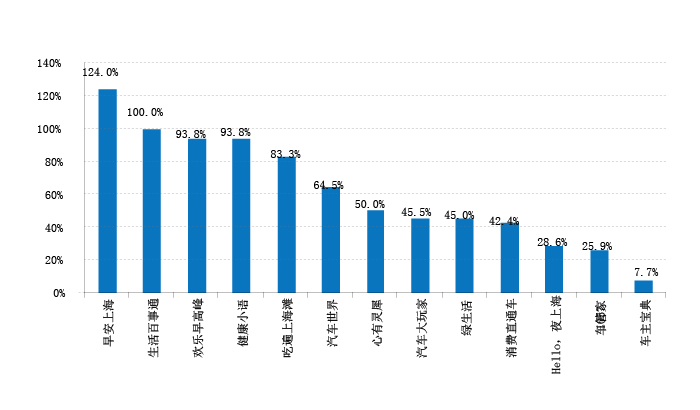 图6 各档生活服务类节目2012年较2011年收听率增幅(%)