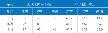 表1 2011年辽宁和江苏人均收听时长及听众规模