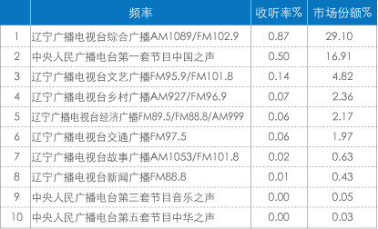 3、辽宁省频率收听情况