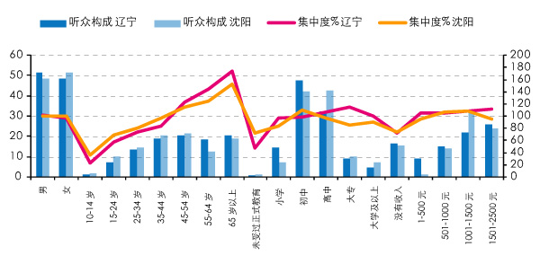 图12 2011年辽宁和沈阳广播听众结构