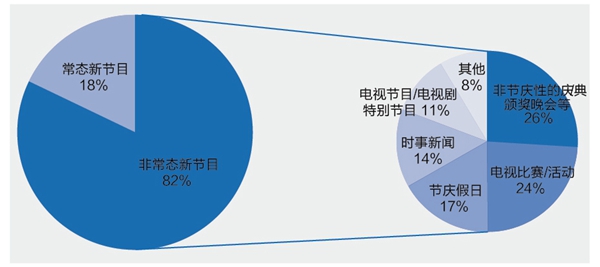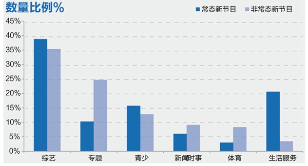 图1 2016年第三季度常态新节目与非常态新节目的数量分布