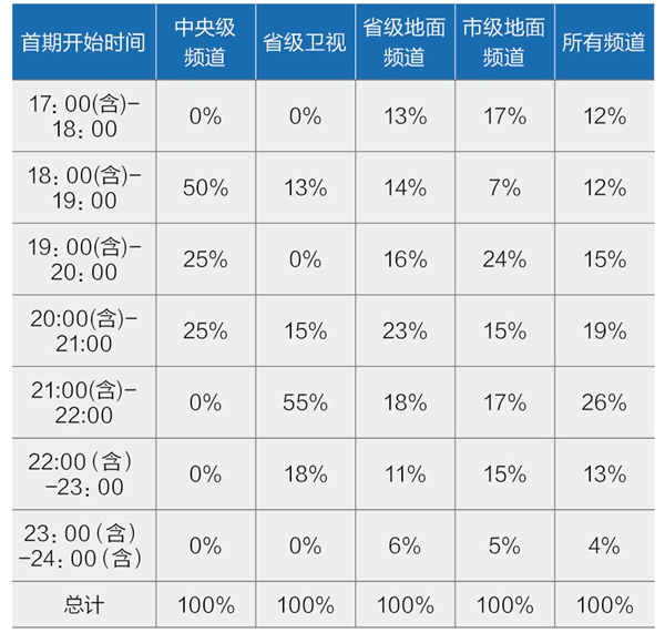 表2 2016年第三季度常态新节目播出时段分布(数量比例%)