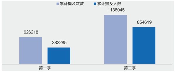 2016年,喜剧类真人秀节目数量进一步缩水,但影响力和传播性都胜于前两年。一方面,经过了2到3季的制作,节目的模式已相对成熟,制作起来也轻车熟路;另一方面,节目总量减少,优秀的喜剧资源集中于一两档节目中,使得这一类型节目的影响力不断提升。以东方卫视《欢乐喜剧人》为例,2016年第二季在微博上的累计提及人数较第一季提升123.6%,提及次数较第一季提升81.4%,由此可见,经过了一季的沉淀,节目的影响力开始明显提升(图1)。