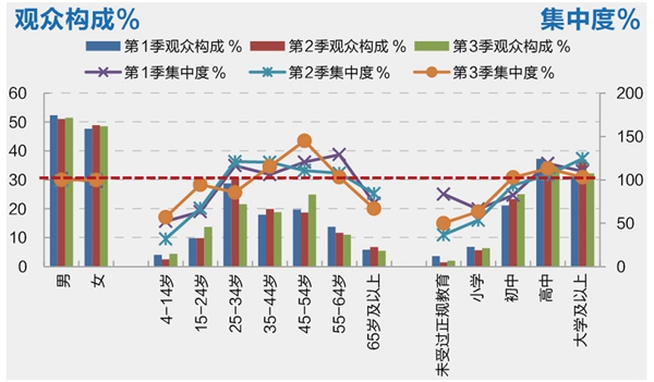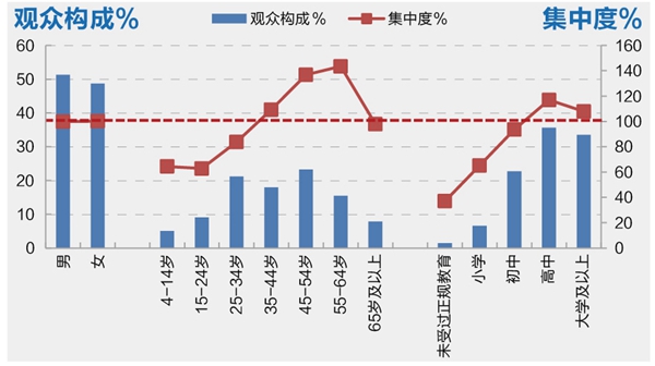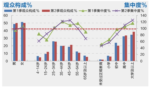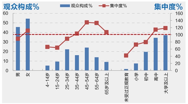 图8 《今夜百乐门》观众构成和集中度(35城市)