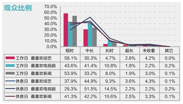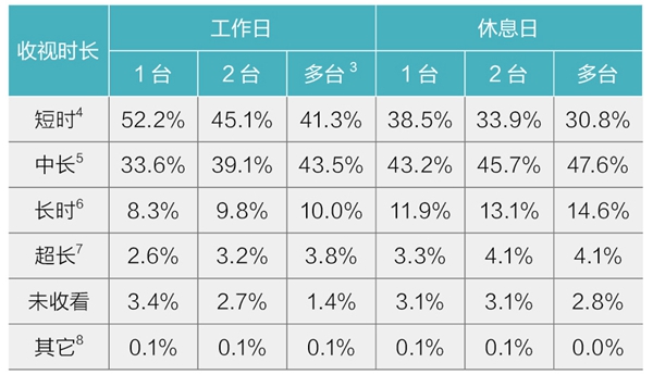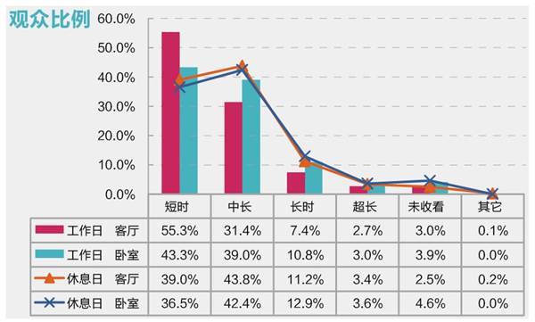 3、观众在客厅习惯短时收视,在卧室青睐长时收视