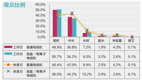 2、拥有液晶/等离子电视机的观众,长时及超长收视比例有所增加