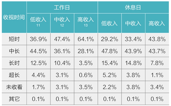 3、 高收入水平观众多为短时收视消费