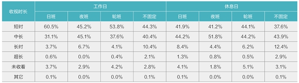 4、 "日班"观众短时收视为主,"不固定"观众收视时间花费相对更高