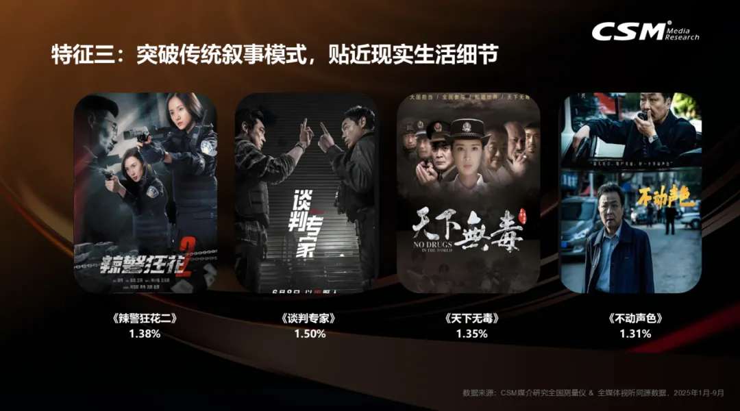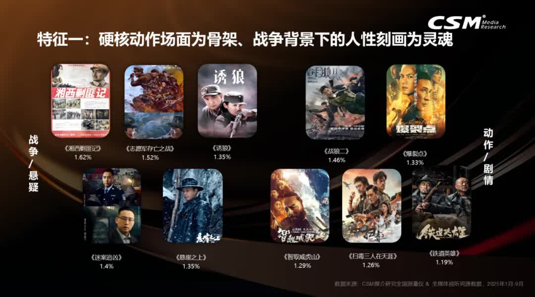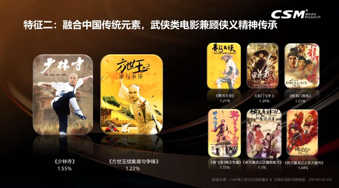 这些高收视影片普遍具备三大特征:一是硬核动作场面为骨架,战争背景下的人性刻画为灵魂,如经典影片《湘西剿匪记》《战狼2》等;二是融合中国传统的元素,武侠类的电影兼顾侠义的精神传承,如《少林寺》《方世玉》《黄河大侠》《新龙门客栈》等;三是突破传统叙事的模式,贴近现实生活,如警匪片《辣警狂花》《谈判专家》《天下无毒》《不动声色》等,他们都获得了比较好的收视。